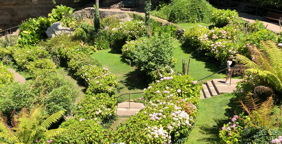 Wir haben 2 solche Krater gesehen und in beiden waren die schönsten Gärten die man sich vorstellen kann. Man läuft auf diese Löcher zu und sieht von oben nur 2 Palmen und wenn man dann über den Rand nach unten schaut eröffnet sich dieser Traum.